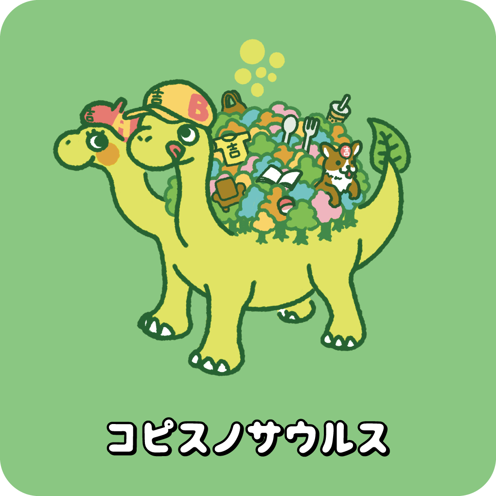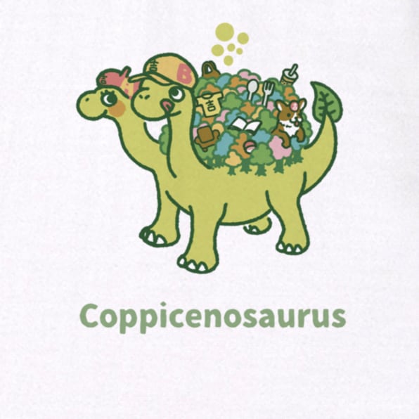 芸術肌なAちゃんと、食いしん坊なBくんの2つ首を持つ、恐竜系キチモン。背中の雑木林には色々なキチモンの巣がある。その中はとっても居心地がいいのだそう。