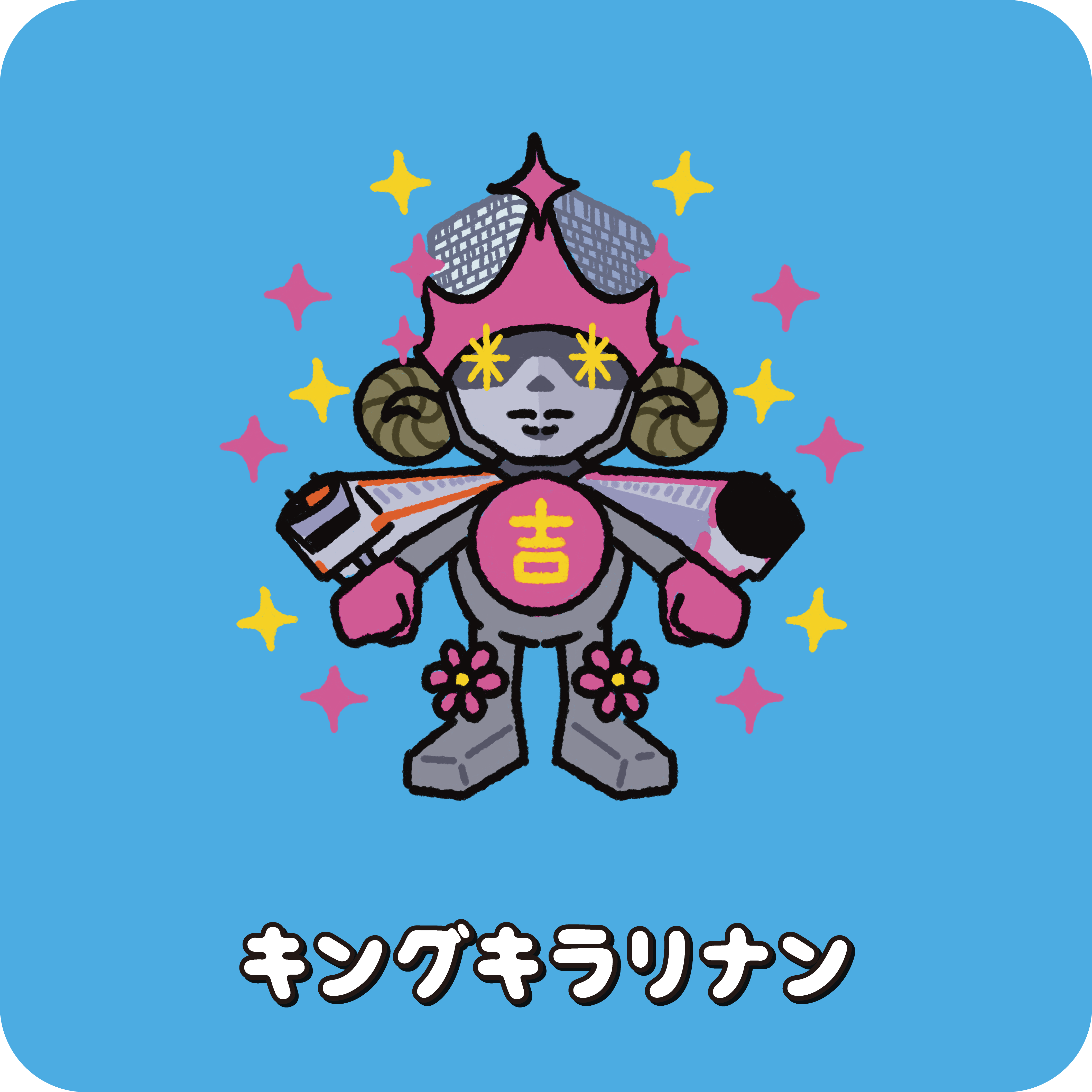 いつでも会えるキチモンの王様。王冠は暗くなると光を放ち、腕からは1日1,000本以上の電車を放つ。
