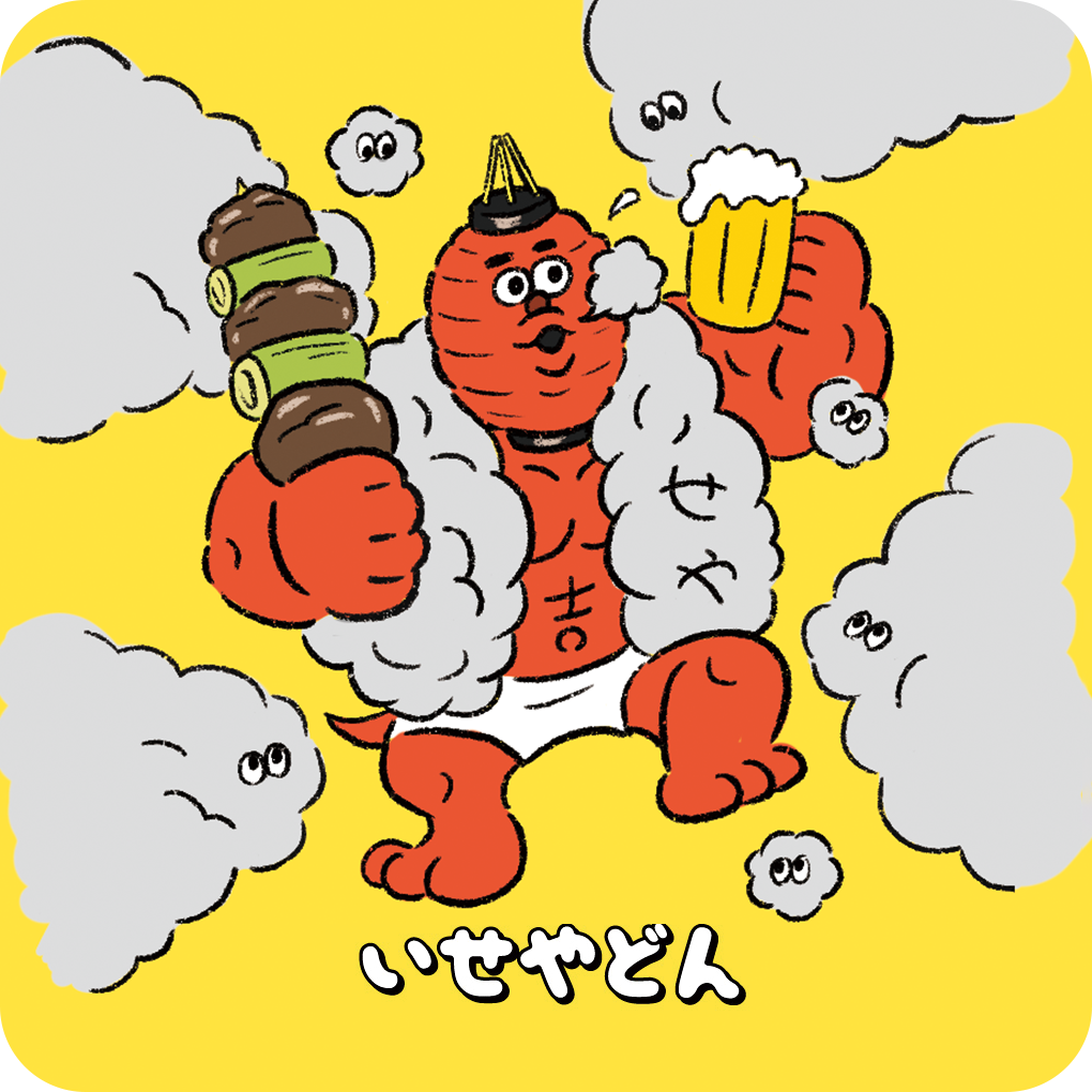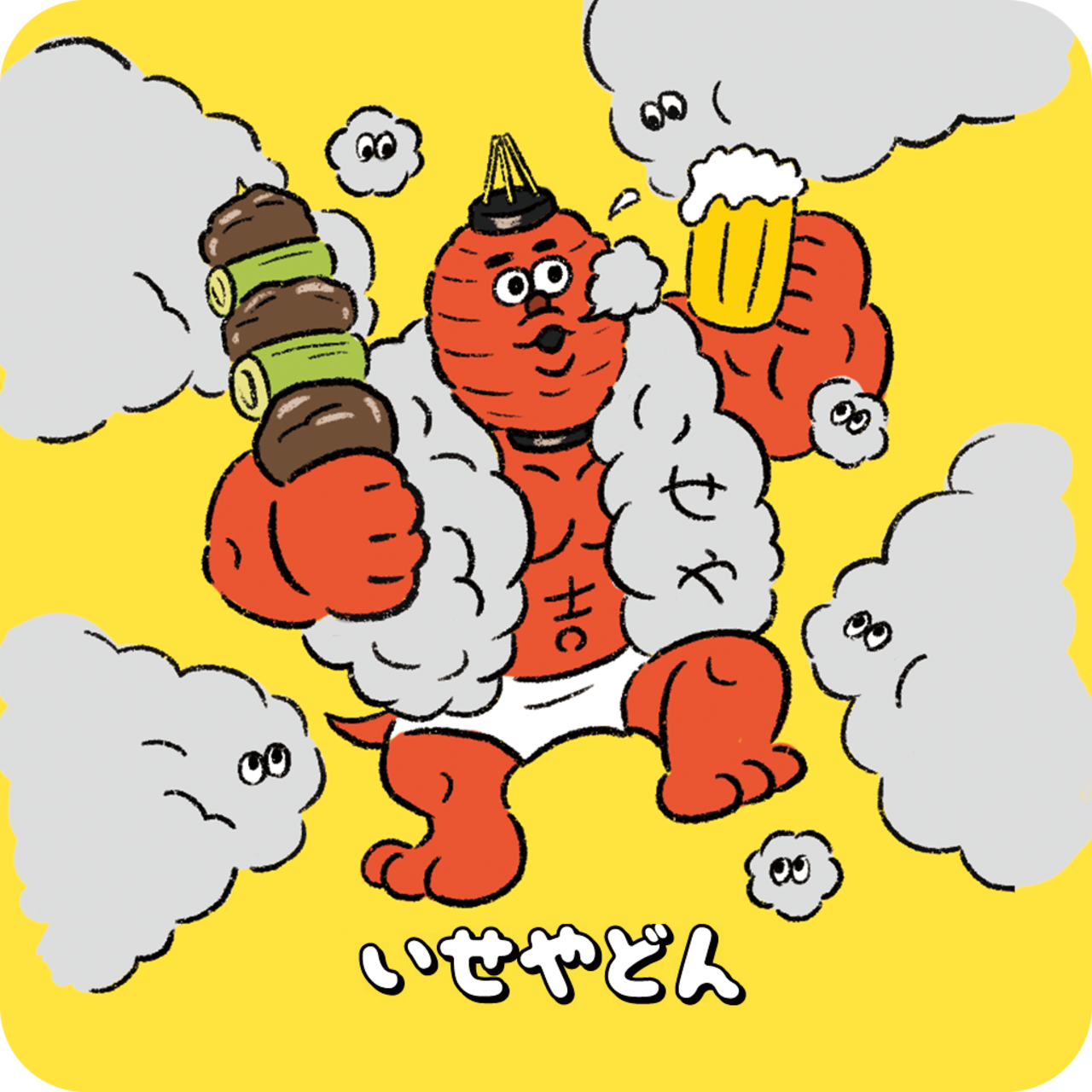 老舗 焼き鳥店『いせや』。 オープンエアな店先からはいつも煙が立ち上る。毎日昼過ぎから顔を赤くした常連さんたちでにぎわっているぞ!